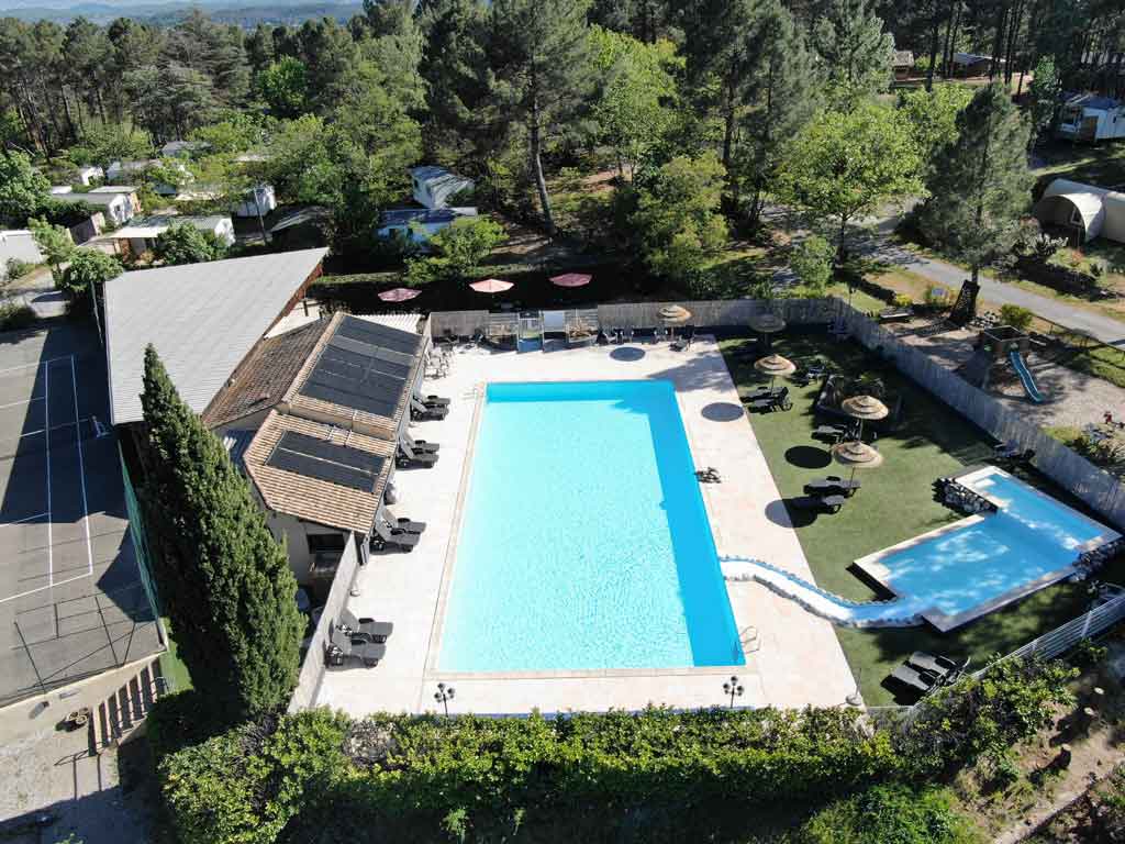 Le bassin principal mesure 10m x 20m et de profondeur 1,5m. Il est accompagné de 2 bassins complémentaires, idéals pour plus petits.