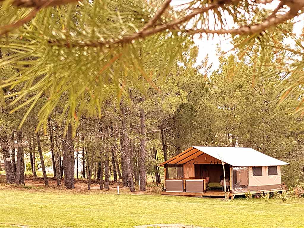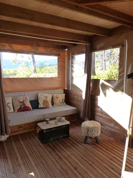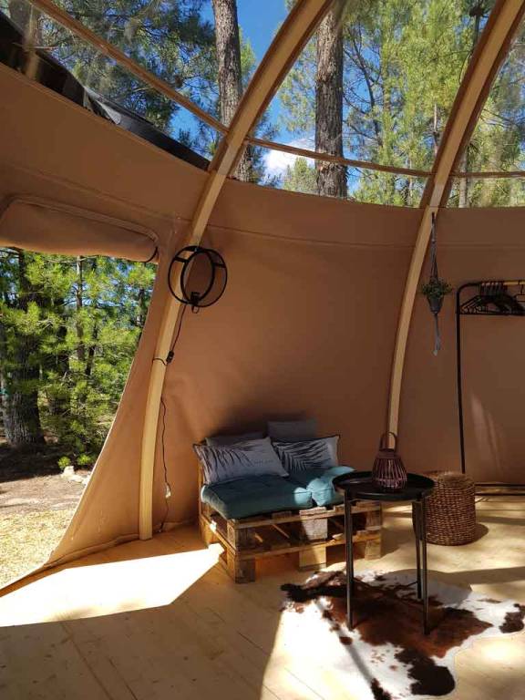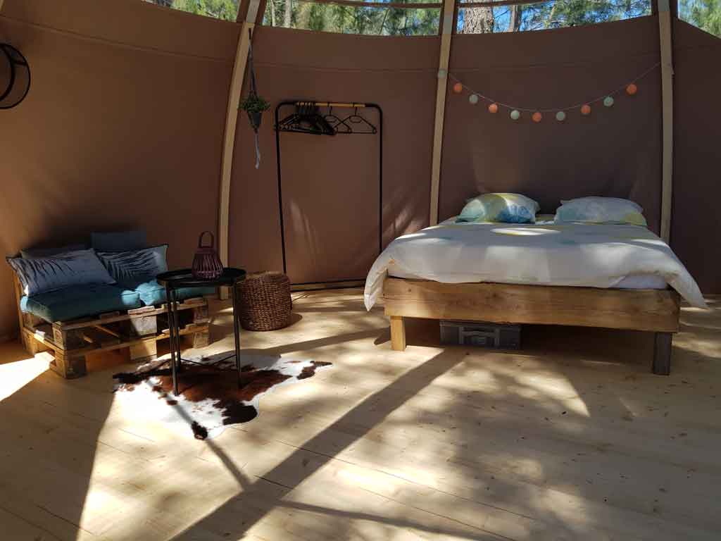 Ambiance GLAMPING pour ce lodge toilé 4/5 personnes.