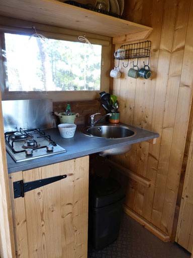 - Réfrigérateur et réchaud gaz, cafetière, couverts et vaisselle