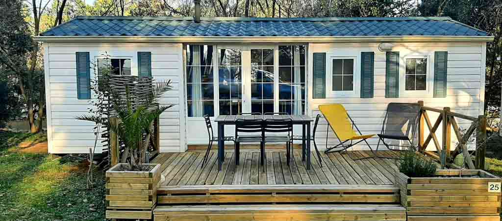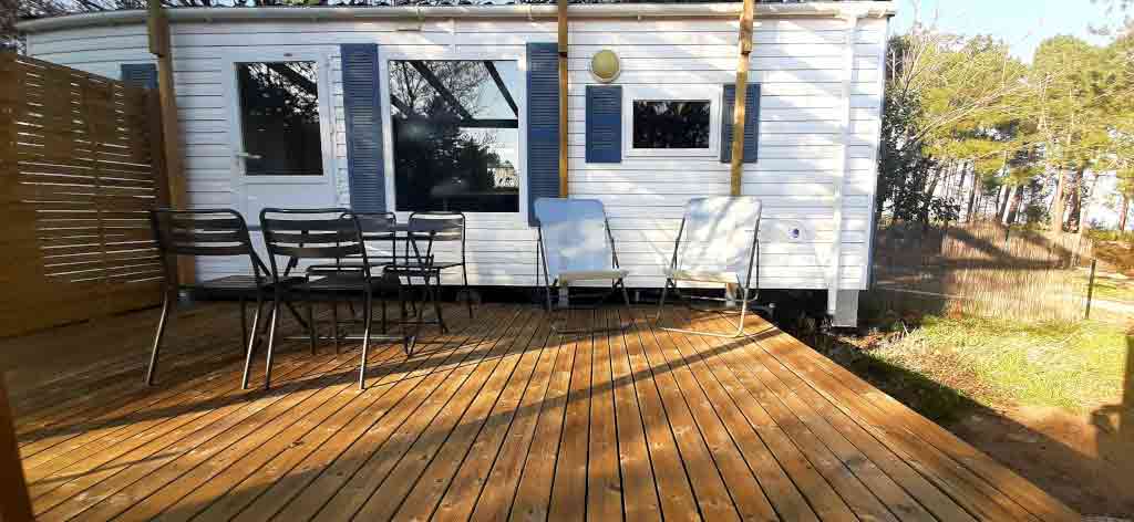 Mobil-homes pour 6 personnes avec belle terrasse.