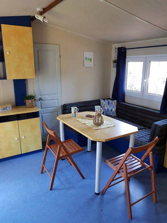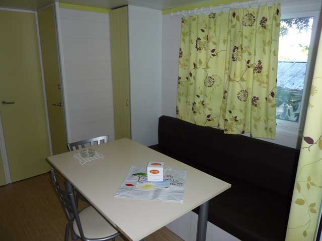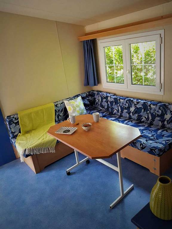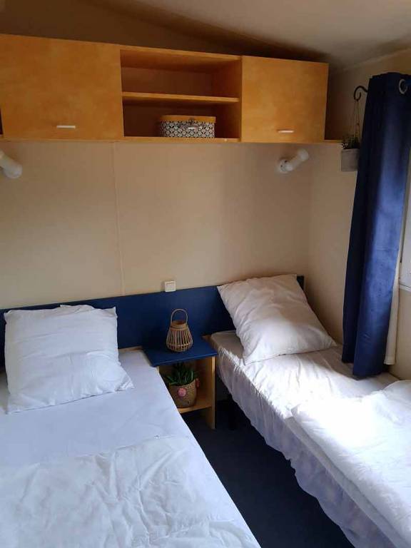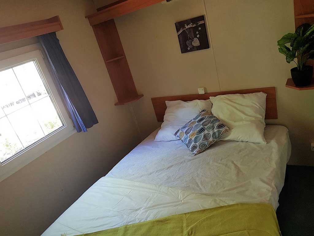 Mobil-homes climatisé pour 4 personnes avec 2 chambres et télévision.